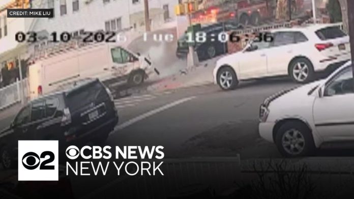 The FDNY tower ladder was traveling eastbound on Avenue S with lights and sirens activated when it struck a commercial van at the intersection of West 11th Street at about 6:30 p.m., according to police. The force of that collision sent the fire truck into an Access-A-Ride van, which then collided with a Lexus SUV.