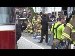 The incident occurred just after 3 a.m. Sunday on South Street near Illinois Street while the firefighters were in town for the annual Fire Department Instructors Conference at the Indiana Convention Center.